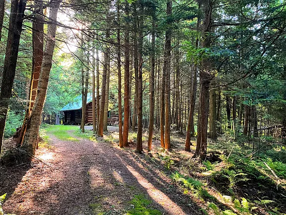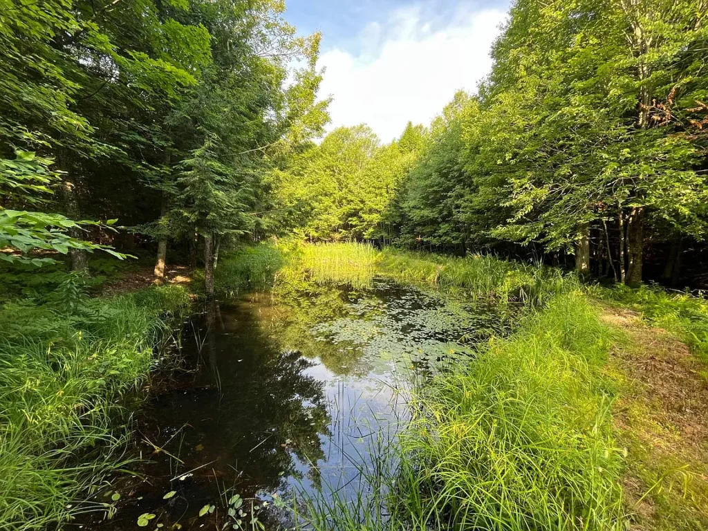 13-Acre Off-Grid Retreat with Custom Log Cabin, Trails, and Spring-Fed Pond in Pitcairn, NY”