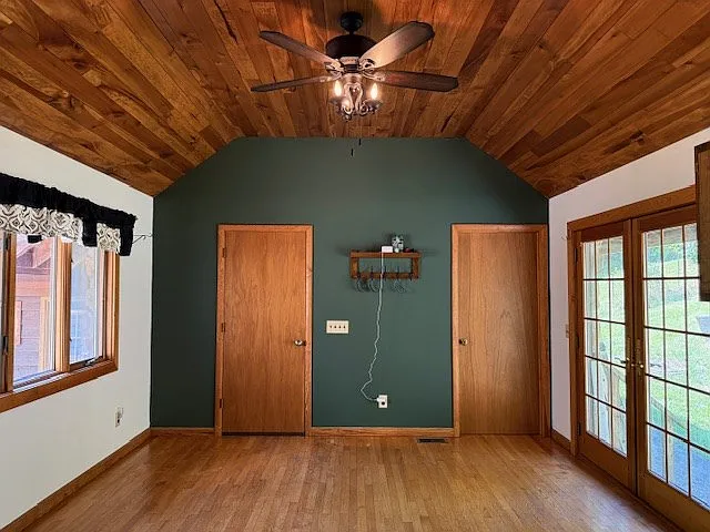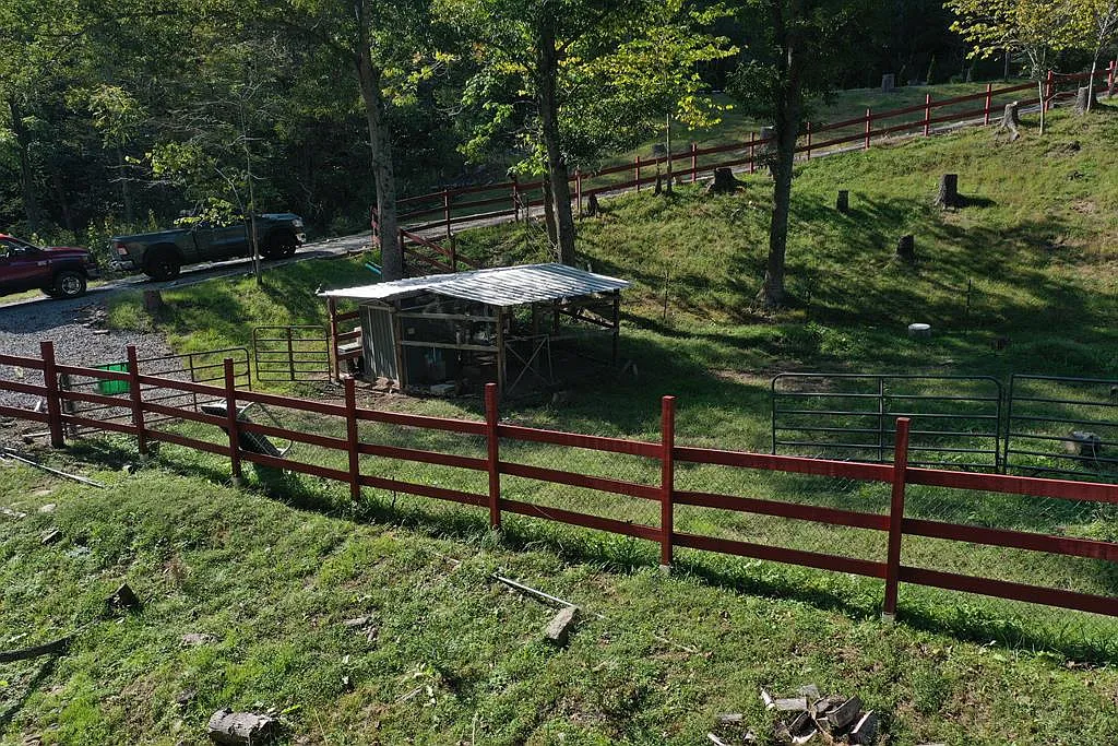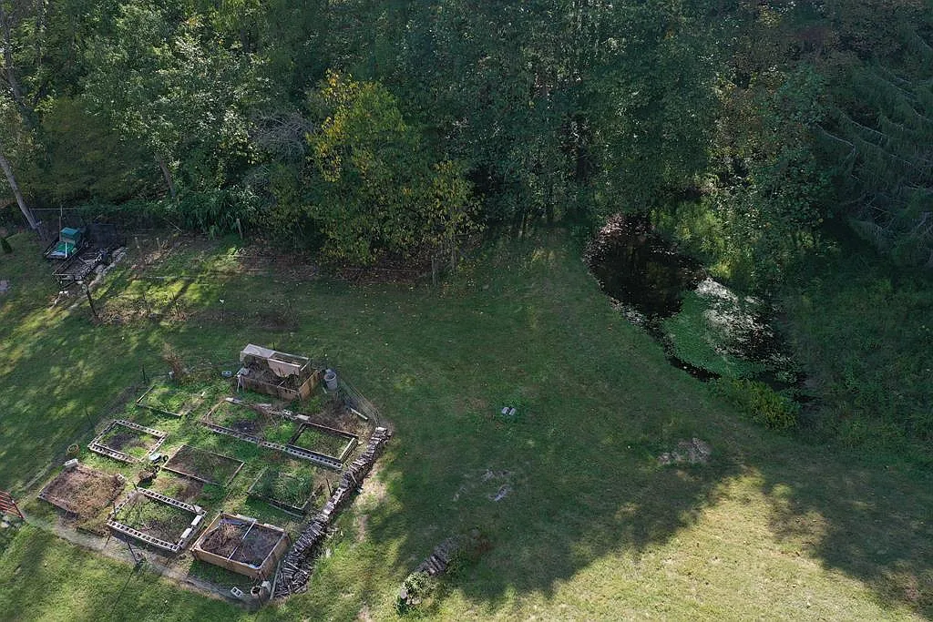 A small pond glistens nearby, adding to the sense of calm, while the fenced area and garden space offer everything you need for a small homestead. There’s room for animals, crops, or moments of quiet reflection.