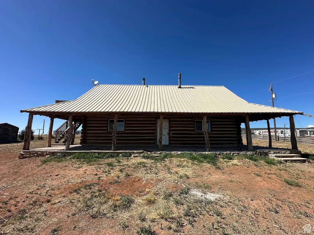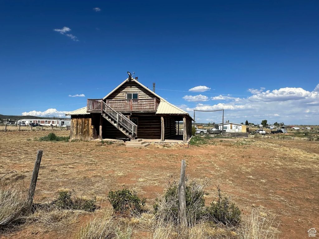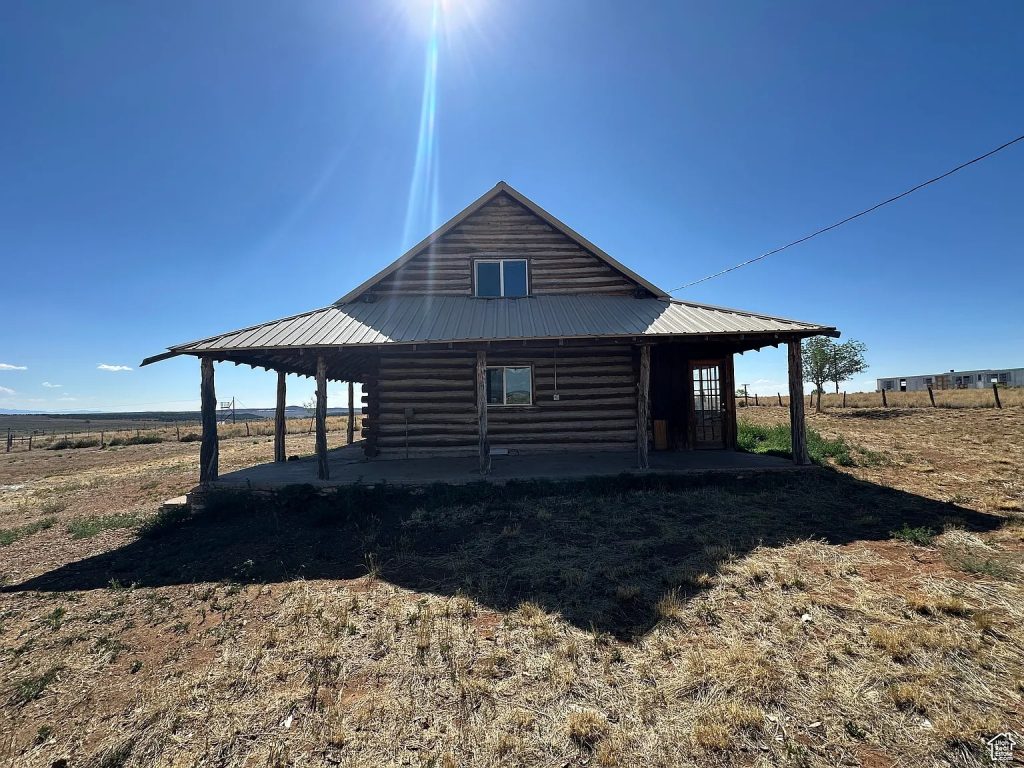 This 3-acre property in La Sal, Utah, sits at the base of the La Sal Mountains and offers wide desert and mountain views. The 1,250-square-foot log-cabin-style home, built in 1985, includes two bedrooms and two bathrooms. Its location provides quiet surroundings while remaining about 35 miles from Moab and its famous outdoor attractions.