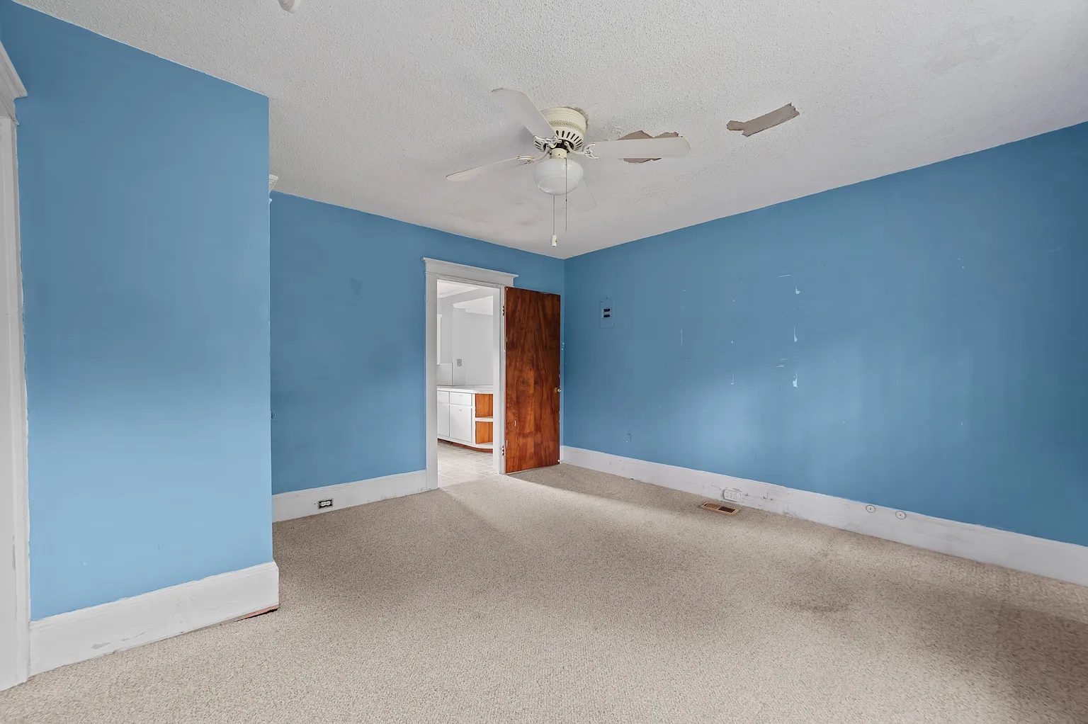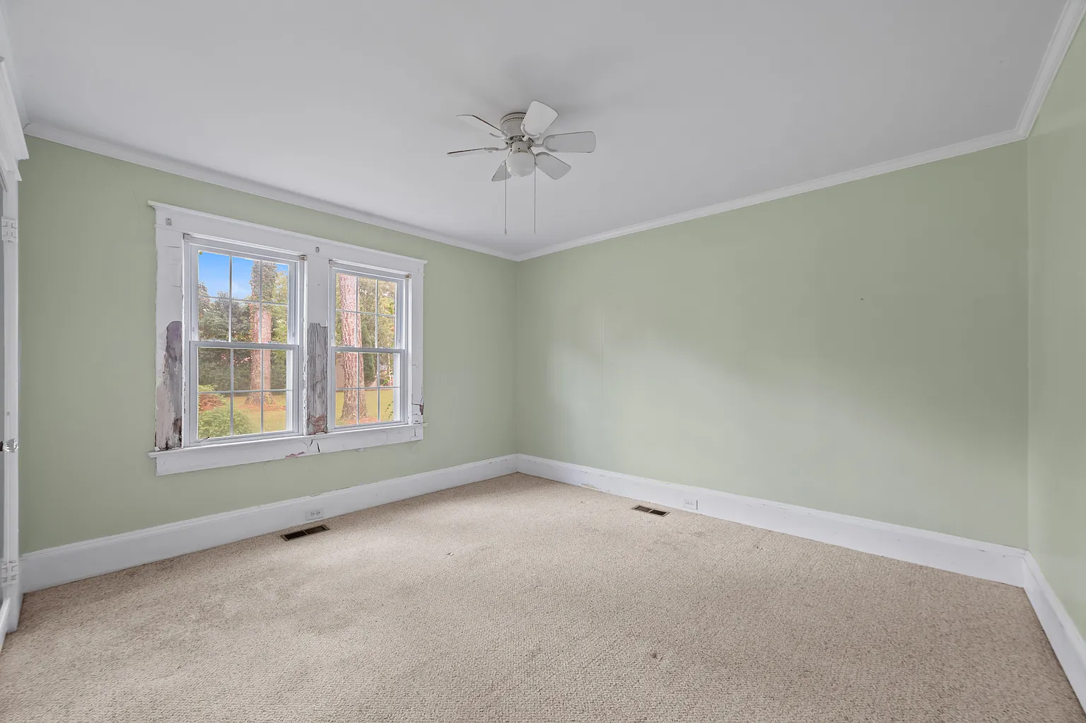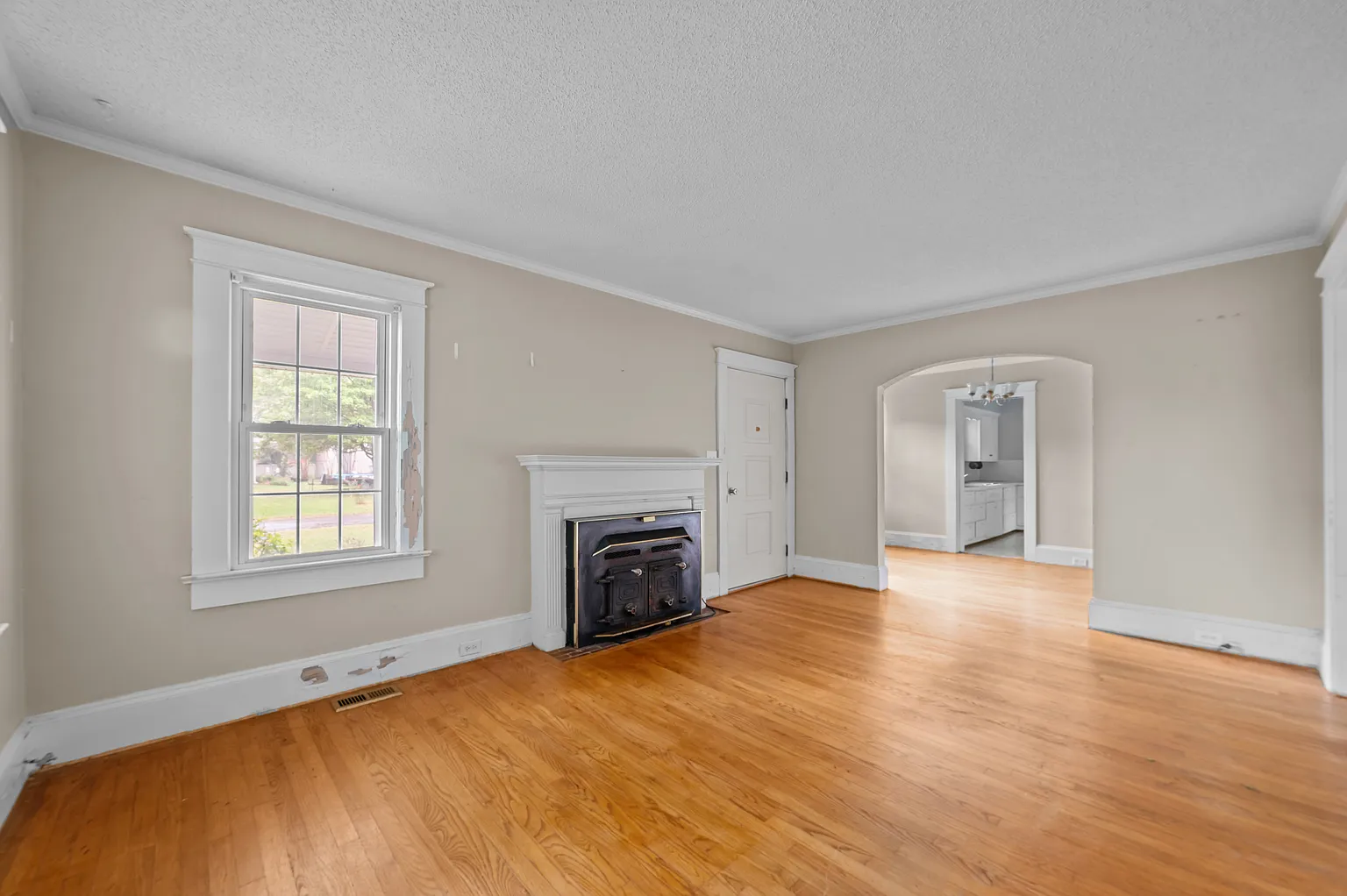 The home includes county water and sewer connections, a heat pump for efficient heating, and central air for cooling. While it requires work, the structure has good bones and offers a solid foundation for the right buyer to bring it back to life.