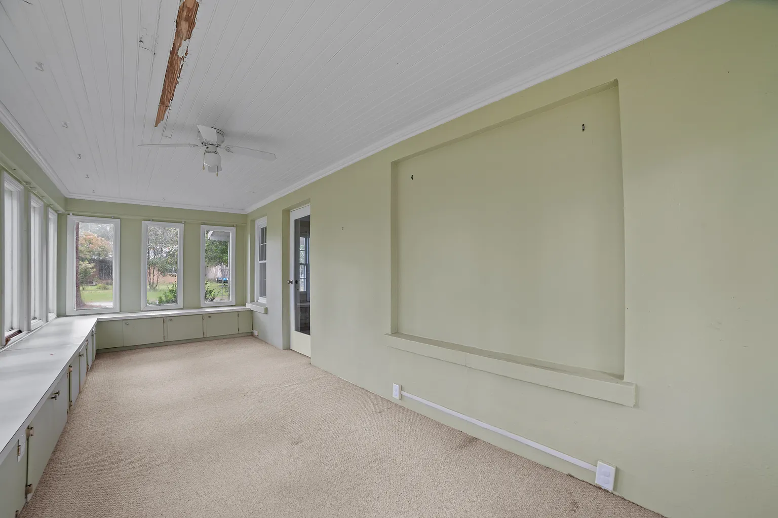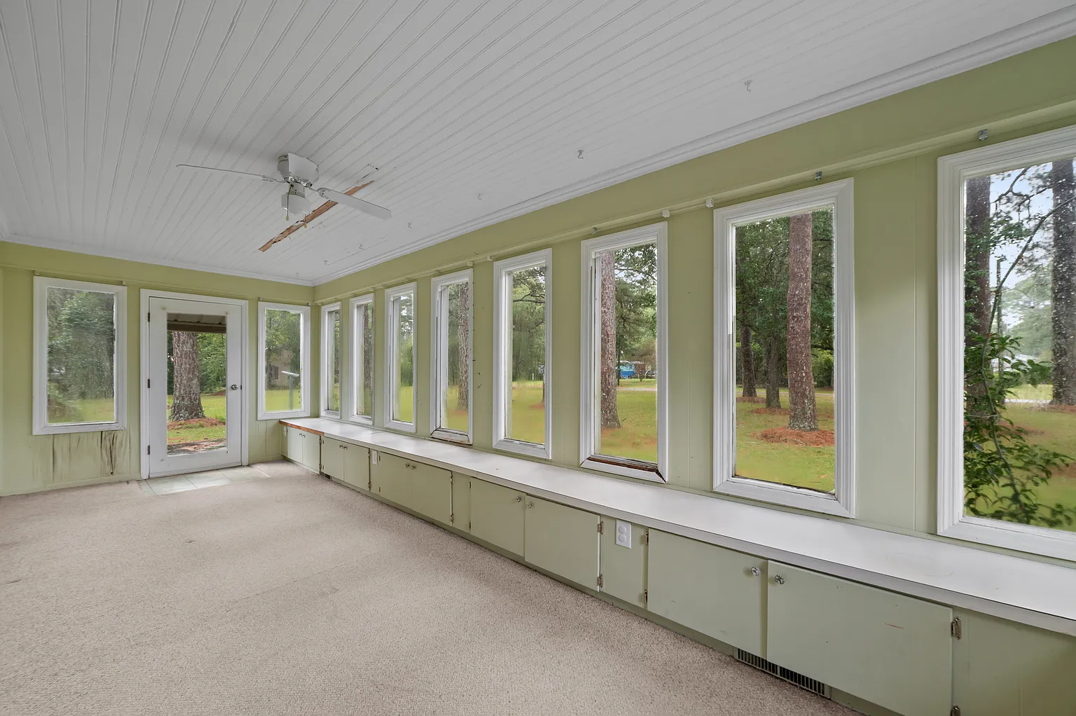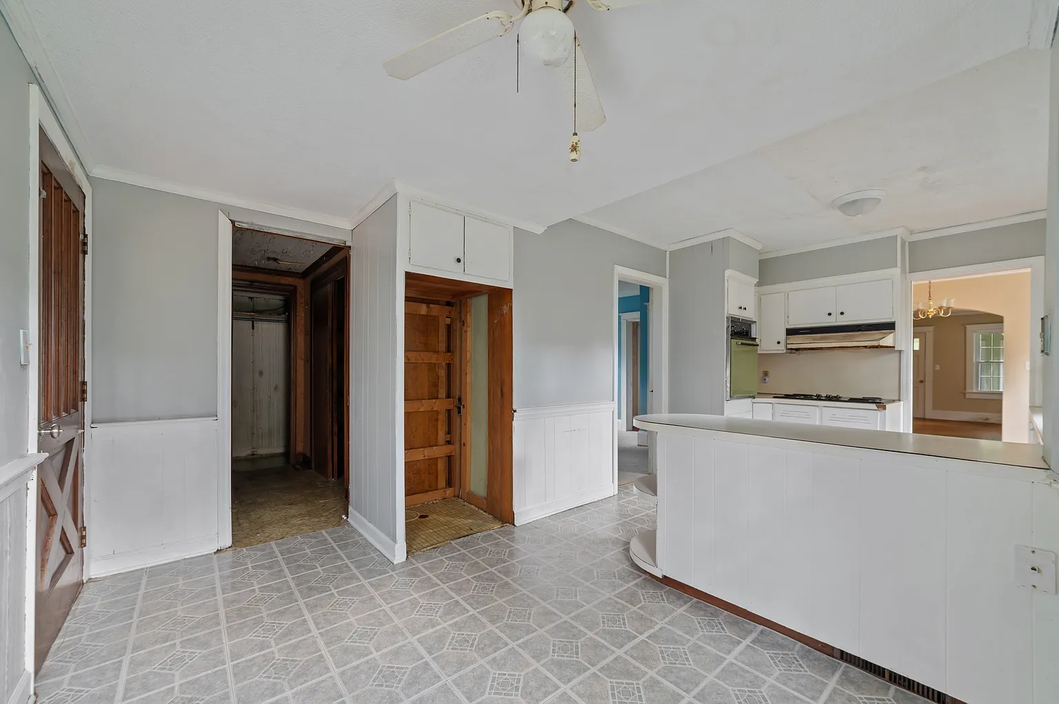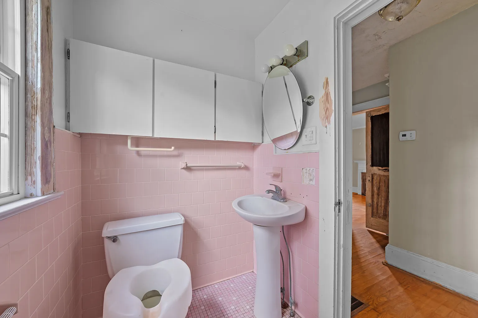 The home includes county water and sewer connections, a heat pump for efficient heating, and central air for cooling. While it requires work, the structure has good bones and offers a solid foundation for the right buyer to bring it back to life.