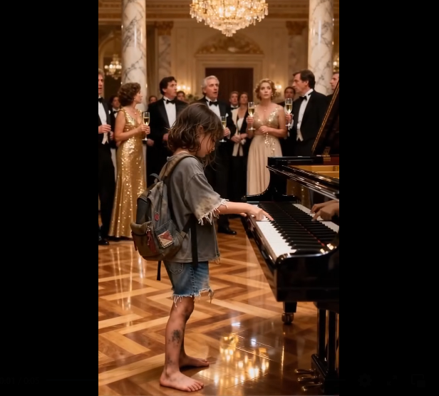 The ballroom gleamed with crystal chandeliers and golden light, every corner alive with laughter, music, and the clinking of fine glassware. It was the annual “Voices of Tomorrow” charity gala — a night devoted to celebrating success and promise. Guests in tailored suits and glittering gowns filled the room, unaware that just outside, a young girl stood barefoot in the cold. Her name was Lydia. She was thin, tired, and hungry, but her eyes fixed not on the food inside — rather, on the grand piano standing near the stage. Once, before hardship stole her comfort and home, she had spent hours playing music that made her heart feel alive. That memory was all she had left.