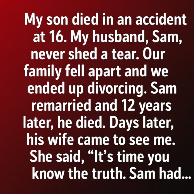 Years passed, and I learned to live again—slowly, carefully, like someone relearning how to breathe. I found comfort in small routines and in remembering my son with love instead of pain. I heard that Sam had remarried, but I never reached out. It felt like another life, one I no longer belonged to. Then, twelve years later, I got the news that Sam had passed away. It stirred something in me—not love, not regret, but a quiet curiosity about the man I once knew. Days later, there was a knock on my door. It was his wife, standing there with a calm expression and something heavy in her eyes.