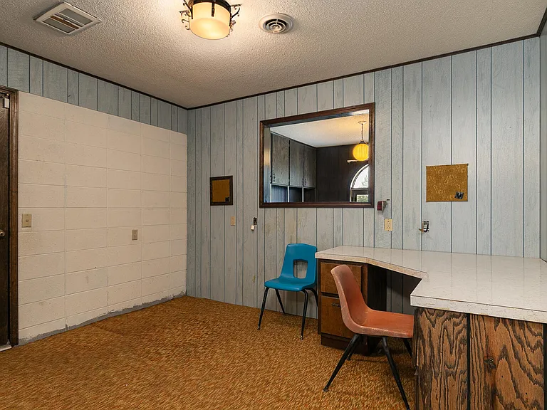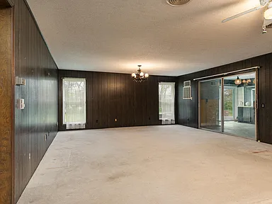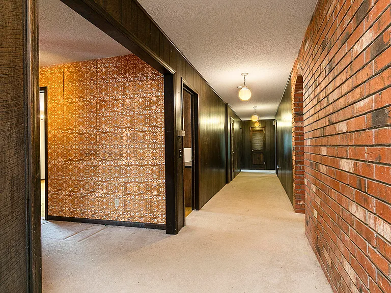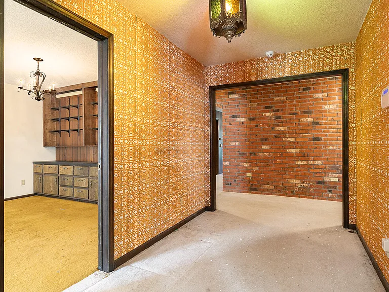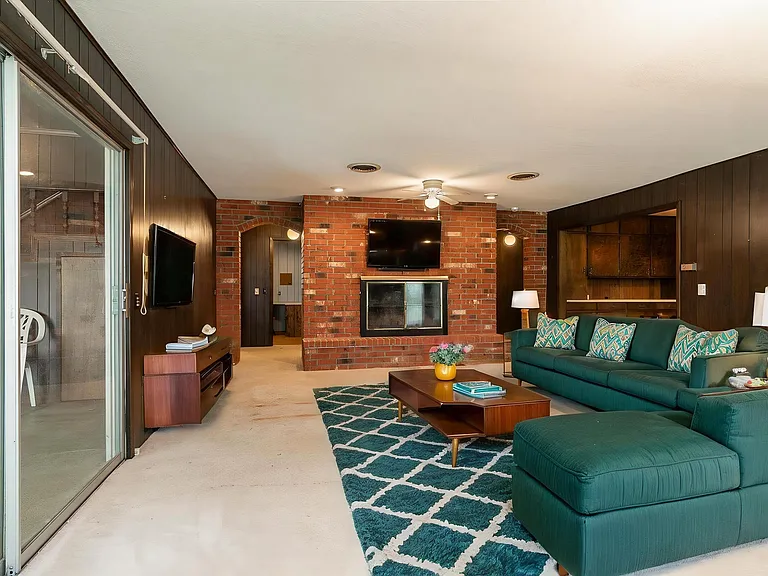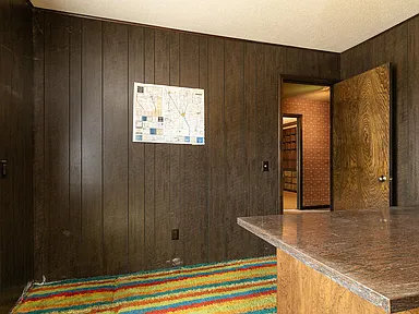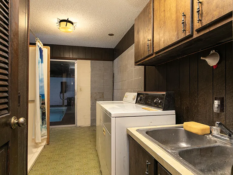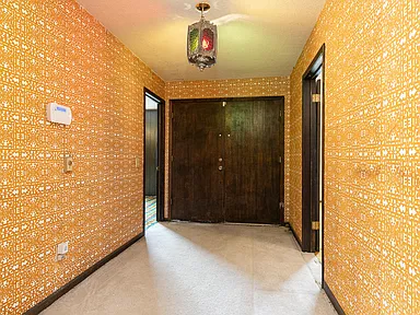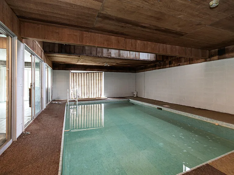 As you enter, you are greeted by the home’s original mid-century character, including vibrant vintage carpet and rich wood accents. The incredible indoor swimming pool is a standout feature, perfect for year-round relaxation, exercise, or entertaining family and friends. This one-of-a-kind pool area is truly a centerpiece, combining nostalgia with luxury potential.
