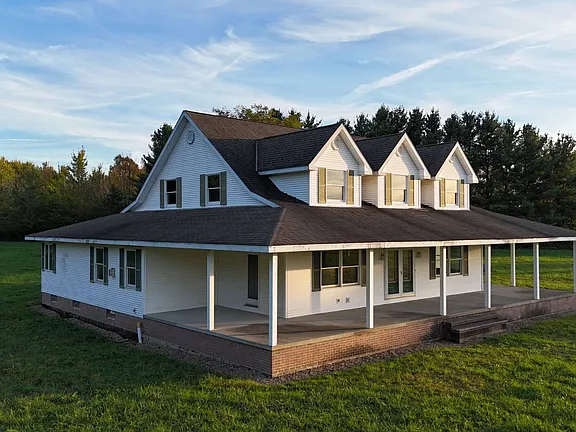 A large front porch, accented with ceiling fans, provides a welcoming place to relax and enjoy the breeze during warmer months. Picture yourself watching the sunset with a glass of wine or hosting gatherings surrounded by the tranquil sounds of nature.
