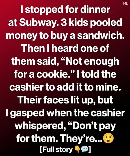 The sandwich shop, with its hum of refrigerators and scent of fresh bread, had transformed from a simple pit stop into a classroom. The lesson was clear: generosity isn’t always about the person giving; sometimes, the greatest generosity is found in the way we receive and share what we already have. Those children didn’t need a benefactor to be happy; they were already rich in the things that mattered most—loyalty, fairness, and a deep appreciation for the simple joy of a shared moment.