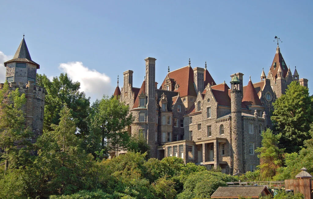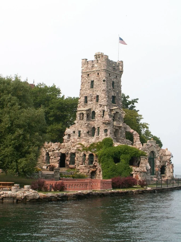 The architecture combined elements of Scottish Baronial and medieval styles, creating a fairy-tale-like fortress amid the tranquil waters and lush greenery of the Thousand Islands.