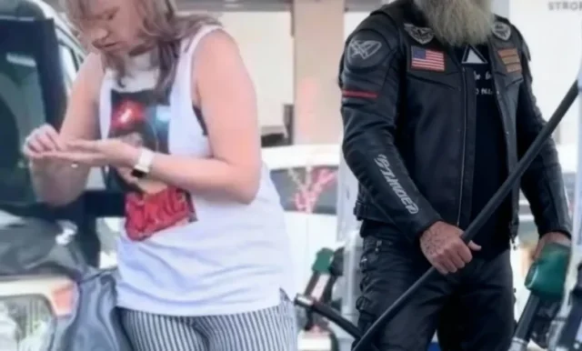 The biker started pumping gas into the crying girl’s car. And he changed her entire life. Sometimes heroism looks like that. Small. Simple. Just filling up someone’s tank and asking if they’re okay.