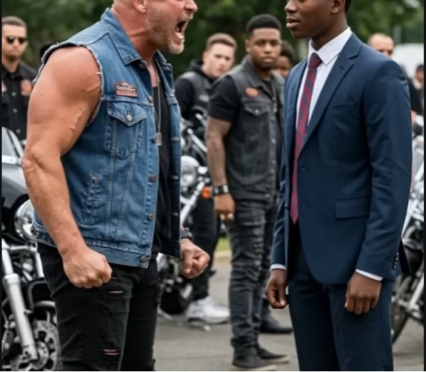 As Jake walked through an empty parking lot that afternoon, the sound of roaring engines broke the stillness. Three bikers rode in, their motorcycles echoing off the concrete walls. Clad in leather jackets and tattoos, they revved their engines, blocking his path.