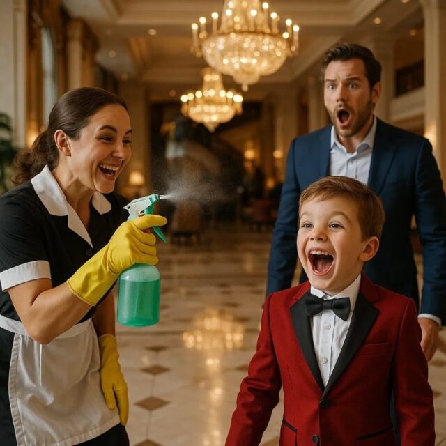 The words fell like thunder in the grand dining hall of the Harrington estate. Guests had gathered for what was supposed to be another one of the millionaire’s eccentric parties, where champagne flowed freely and music drowned out the awkward silences. But that night, silence wasn’t just an absence of sound—it was the prison in which young Thomas Harrington had lived since the day his mother died. He was eight years old, silent as stone, eyes hollow like a boy who had seen too much of life far too soon.