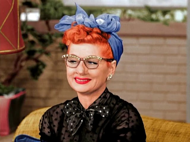 Later in the episode, Ricky insists on introducing Lucy to Holden properly, not realizing she’s already humiliated herself. Terrified, Lucy shows up at the meeting in a ridiculous disguise — dark sunglasses, a scarf, and a comically fake putty nose.