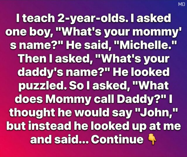 I teach two-year-olds, which means my days are filled with tiny shoes in the wrong cubbies, snack-time negotiations, and questions that lead to the most unexpected answers. One morning during circle time, we were practicing names. I asked one little boy, “What’s your mommy’s name?” He smiled proudly and said, “Michelle.” The class clapped, as they always do. Then I asked, “What’s your daddy’s name?” He paused, eyebrows furrowed, clearly thinking hard. Trying to help, I gently rephrased: “What does Mommy call Daddy?” I expected something simple — maybe “John” or “Mike.” Instead, he looked up at me with complete sincerity and said, “Best friend.”