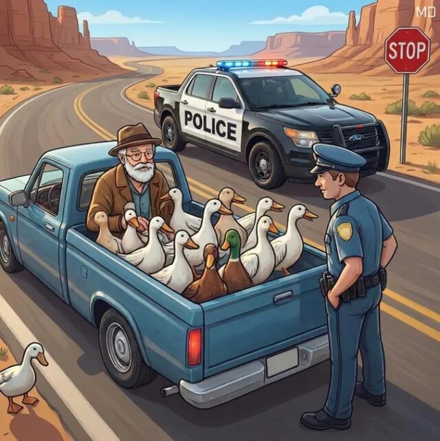 With a measured voice, he reminded the driver of their previous conversation. “Sir, I thought I told you to take these ducks to the zoo,” he said. The elderly man looked genuinely puzzled before responding warmly, “I did exactly that. We had a wonderful time.” The officer paused, trying to process the reply. “Then why are they back on the road?” he asked. The man chuckled and gestured toward the flock behind him. “Well,” he explained cheerfully, “today we’re headed to the beach. I figured they deserved another fun day out.”