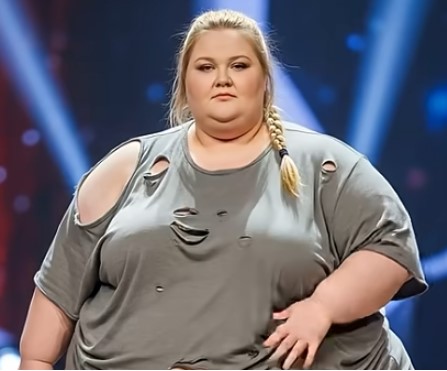 When the theater doors closed and the lights dimmed, the audience expected another polished performer—someone glittering, confident, and ready to impress. Instead, a woman walked onto the stage in a torn grey shirt. Her body was large, her steps heavy but steady, and her breathing visible under the spotlight. Whispers spread through the crowd, and even the judges exchanged uncertain glances.