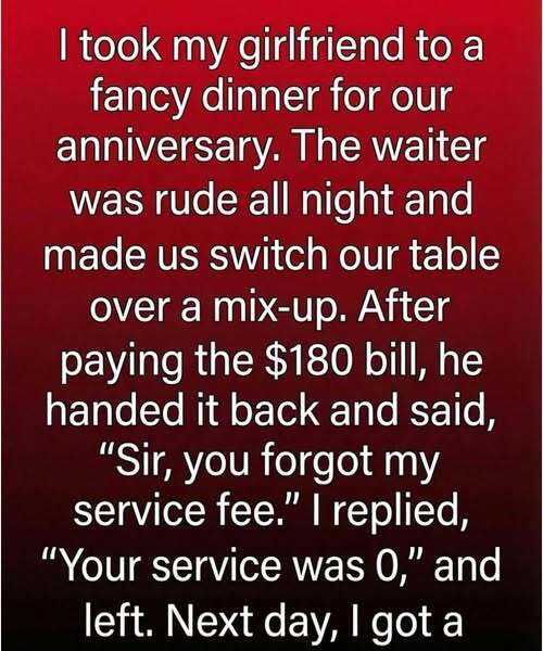 When the bill arrived, I paid without hesitation. The cost wasn’t the issue. But when the waiter returned and accused me of neglecting the service fee, something deeper surfaced. I responded calmly, stating that respect had been missing, and walked away. There was no argument, no scene—just a boundary drawn.