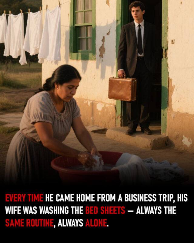 Every time the husband returned from a business trip, he found his wife diligently washing the bed sheets. Curious and uneasy, he secretly installed a camera in their bedroom—only to be devastated by the heartbreaking truth it revealed.
