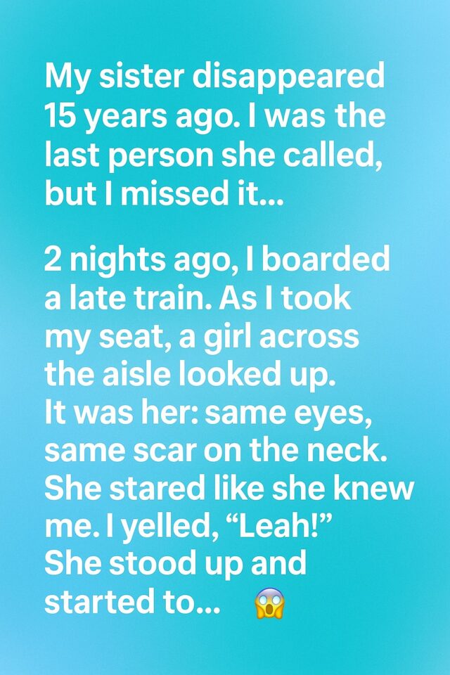 Two nights ago, I boarded a late train after a long workday, grateful for the stillness that usually comes with night travel. The carriage was half-empty, lit by soft overhead lights and the gentle rhythm of the rails. As I settled into my seat, I glanced across the aisle and felt my breath catch. The girl sitting there looked up at the same moment. Her eyes were unmistakable, familiar in a way that sent a shiver through me. Then I noticed the small scar on her neck, one I remembered from childhood accidents and shared summers. Without thinking, I said her name aloud, my voice louder than intended.