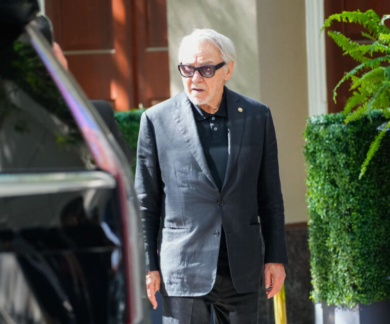 Harvey Keitel and Daphna Kastner are seen at the wake of Robert De Niro’s grandson Leandro De Niro on July 06, 2023 in New York City. (Photo by Gotham/GC Images)