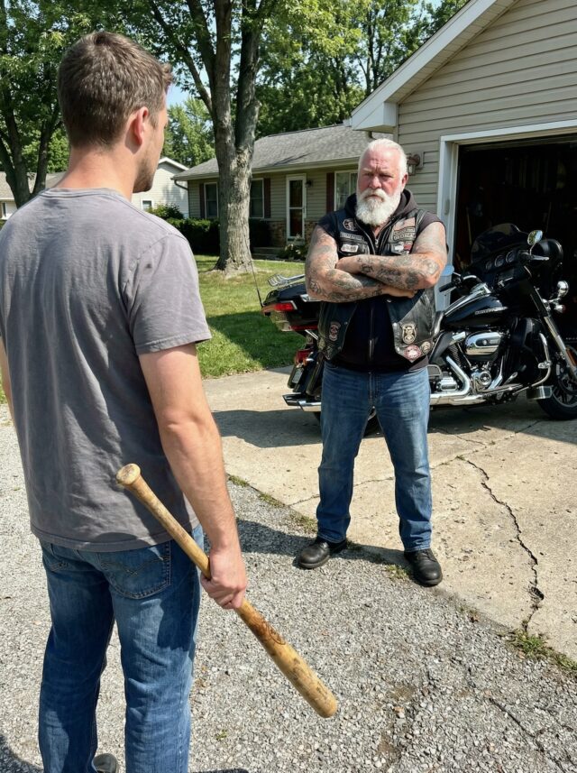 I brought a baseball bat to confront the biker who’d been harassing my daughter. I left his driveway twenty minutes later crying so hard I couldn’t drive.