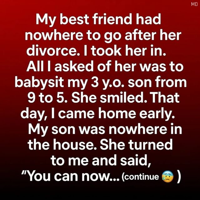 When my best friend called me after her divorce, her voice carried a quiet exhaustion I had never heard before. She didn’t ask for much—just a place to stay until she could find her footing again. Of course, I said yes. We had grown up together, shared secrets, and supported each other through every chapter of life. Offering her a spare room felt like the most natural thing in the world. The only thing I asked in return was simple: help me look after my three-year-old son during the day while I worked. She agreed with a soft smile, and for a moment, it felt like everything would fall into place.