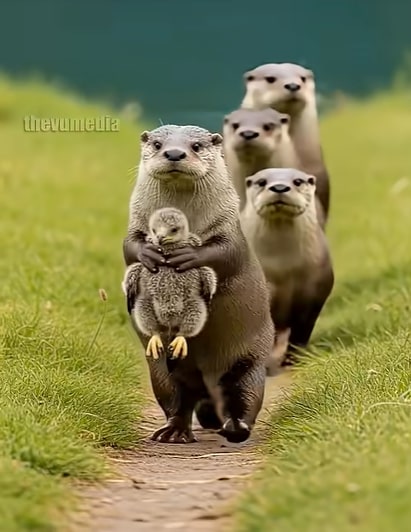Witnesses described the moment as “nature working in unity,” proving that kindness exists beyond species. The rescued eagle did not attack the otters or fly away immediately. Instead, she looked at them calmly and let her baby nuzzle under her wing, while the otters watched peacefully. It was a rare moment where the wild was not divided into predator and prey, but united in life’s most powerful instinct—to protect the vulnerable.