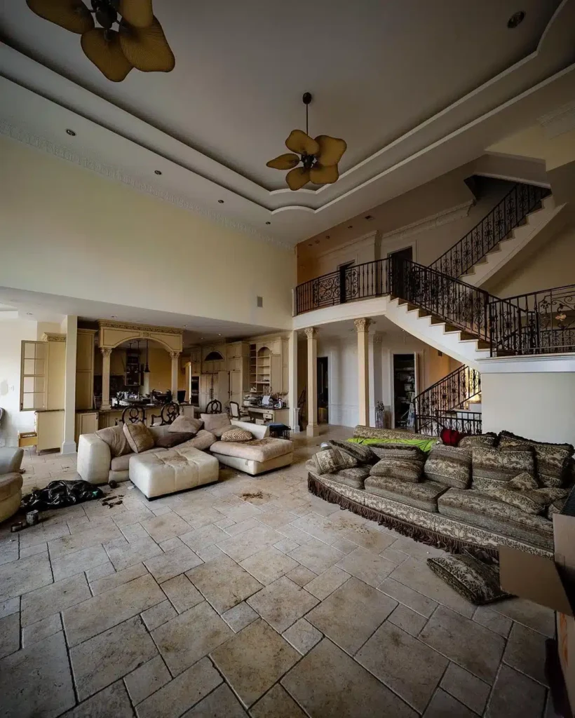 The mansion’s exterior promised opulence: Corinthian columns, ornate stone reliefs, and grand balconies overlooking manicured—now wild—gardens. But stepping inside was a paradoxical experience.
