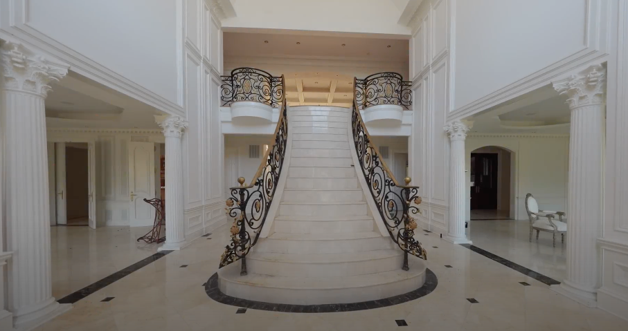 It looked like an estate that had just opened its doors for a private gala: crystal chandeliers hung high in vaulted ceilings, their crystals untouched by dust; a double staircase curved down gracefully, with handrails smooth and polished as if recently wiped; and floors of Italian marble reflected stray beams of sunlight.