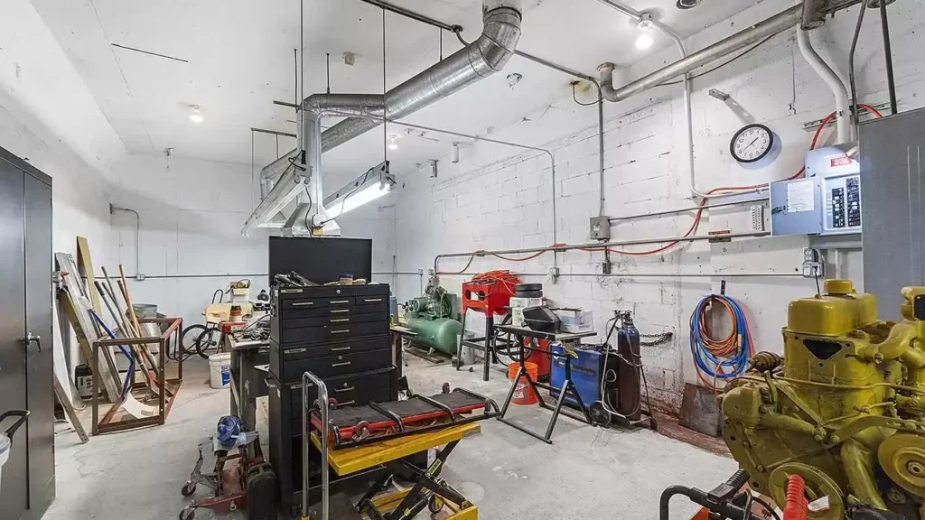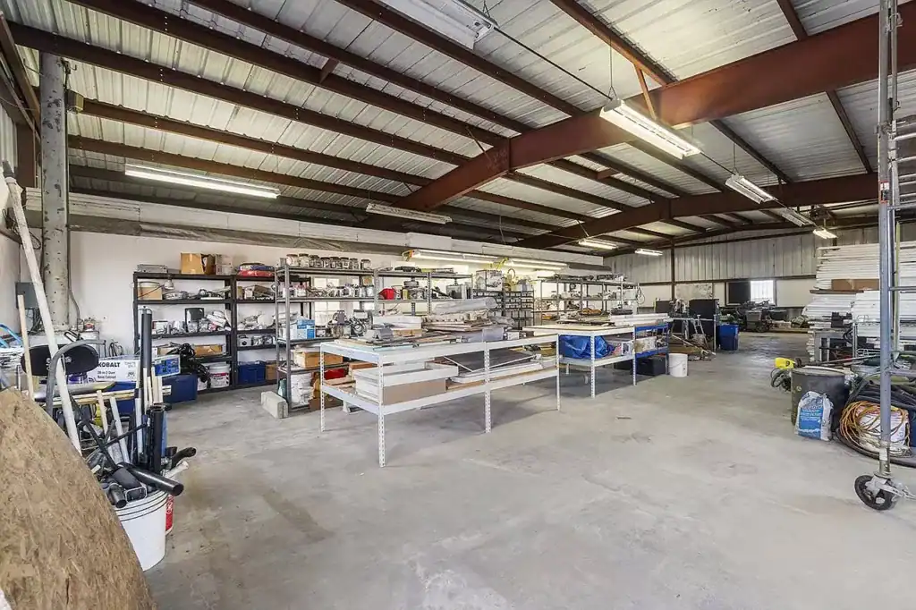 Above ground, you’ll find a massive 3,794-square-foot metal workshop connected by an 820-square-foot corridor. It’s the perfect blend of underground bunker history and underground bunker functionality.