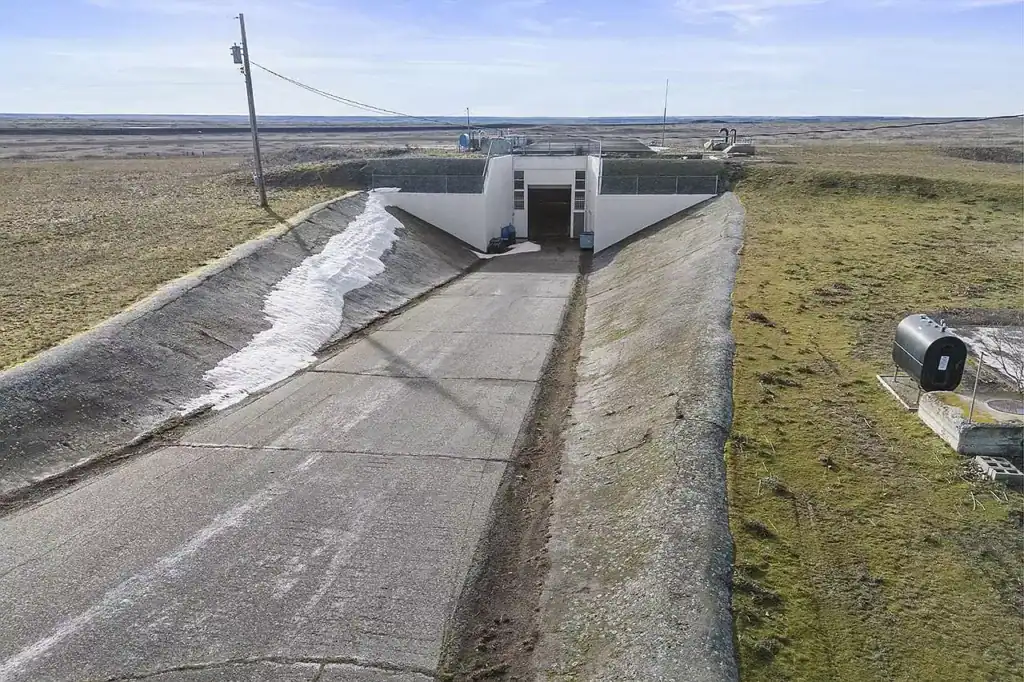 Step inside a Cold War-era missile silo transformed into a modern fallout shelter and underground bunker. This unique structure combines the legacy of secure military-grade design with modern systems for livability, privacy, and long-term safety. Priced at $1.45 million, it includes a 12,946-square-foot underground complex, a 1,906 sq ft finished living space, an 820 sq ft corridor, and a 3,794 sq ft steel garage/workshop above ground.