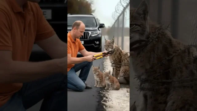 With steady hands, he began cutting through the barbed wire, each snip bringing the lynx closer to freedom. It was a moment of intense focus and clear compassion, showing a deep respect for wildlife.
