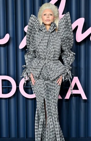 For the event, Rinna debuted a bold platinum-blonde hairstyle styled with dramatic volume and a sculptural finish that framed her face. The hair transformation was paired with polished makeup that emphasized her brows, lashes, and signature lips, creating a cohesive and high-fashion aesthetic. She completed the look with an avant-garde black-and-white plaid ensemble featuring oversized sleeves and a structured silhouette. The outfit’s architectural lines and gathered neckline amplified her presence, aligning her appearance with the experimental spirit often celebrated at global fashion events.