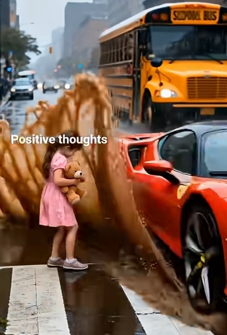 As traffic rushed by, a bright red Ferrari approached. Instead of slowing down, the driver sped through a huge puddle directly in front of the little girl. A tidal wave of dirty street water crashed over her from head to toe. Her dress, her shoes, and even her teddy bear were completely drenched.
