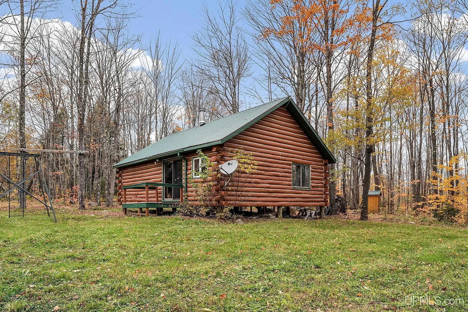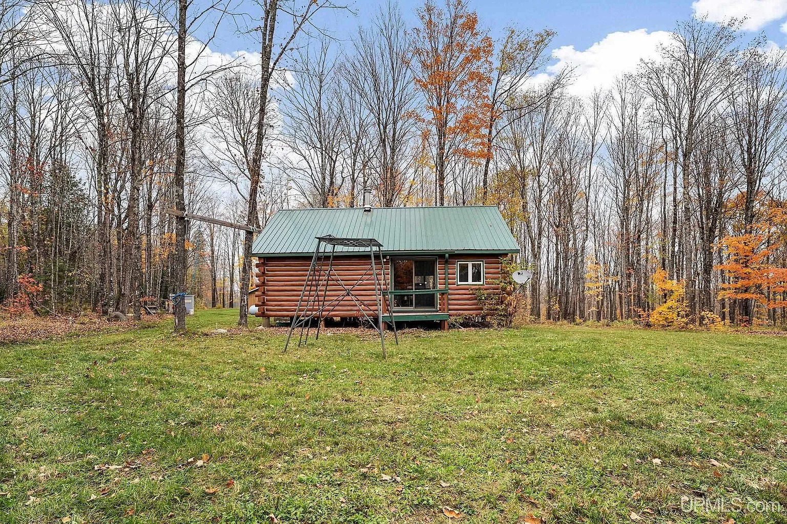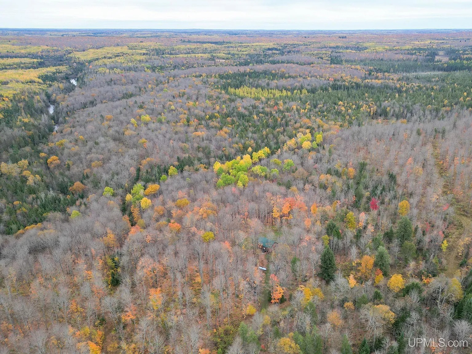 This classic Upper Peninsula log cabin sits on 80 acres of peaceful, forested land in Iron County. The property lies in the heart of deer and grouse country, surrounded by hardwood trees and wildlife. Moreover, the Fence River flows through the east side of the property, offering scenic beauty and quality brook trout fishing. Because of this location, the cabin creates a true off-grid retreat for outdoor living and recreation.