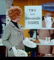 In The Lucy Show Season 6, Episode 2, Lucy Carmichael wanders into a fancy store, only to discover a display of dishes boldly labeled “UNBREAKABLE.” To any normal person, that’s a selling point.
