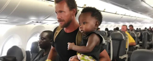 Shawn’s cries had escalated into full-blown screams, and I was on the verge of tears myself. That’s when a knight in a rumpled coat appeared. He was sitting across the aisle from us, a seemingly kind man with a calm demeanor.