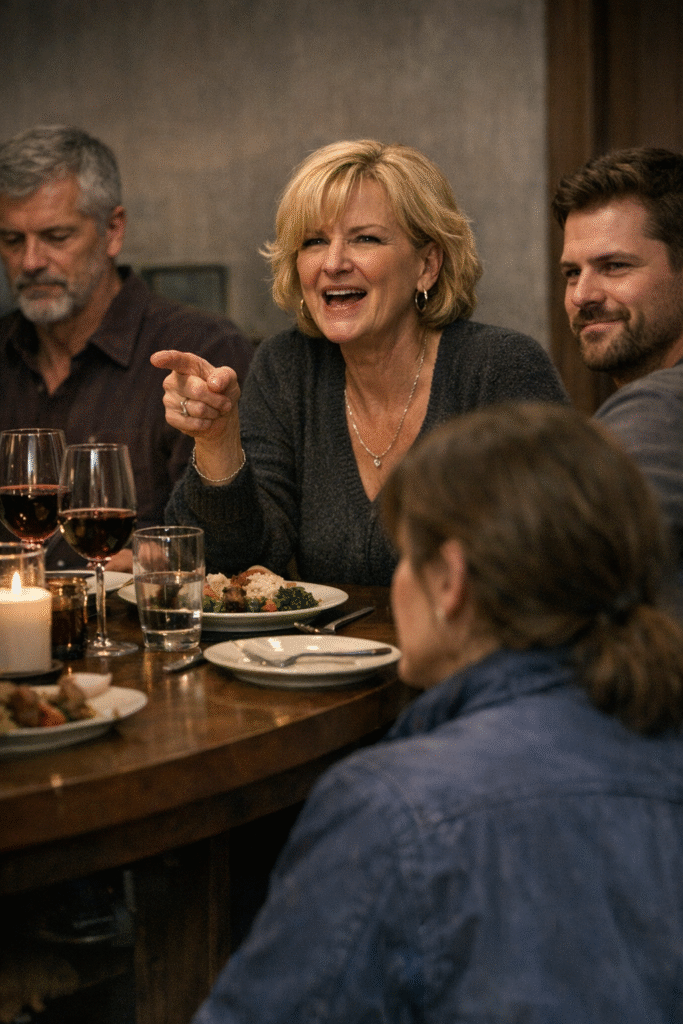 The dinner began politely enough. Silverware clinked against porcelain, polite laughter filled the air, and the smell of roasted lamb drifted from the kitchen.