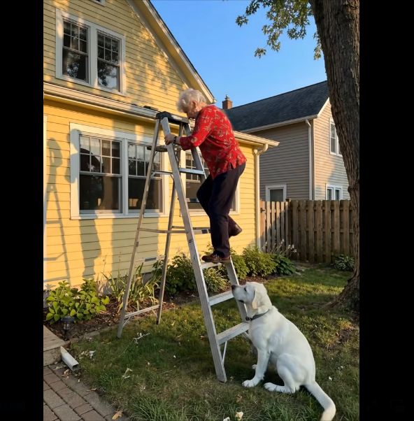 I WAS ON THE LADDER TRIMMING BRANCHES WHEN MY DOG BIT MY PANT LEG AND PULLED ME DOWN—THEN I REALIZED WHY HE HAD ACTED SO STRANGELY. I remember that day clearly. The morning sky was heavy and gray, and although it looked like rain could fall at any moment, I was determined to finish trimming the old apple tree. The ladder was already leaning against the trunk, and I didn’t want to postpone the task any longer. I had barely climbed a few steps when I felt a sudden tug at my pants. Startled, I turned around and saw my dog trying desperately to climb the ladder behind me. His paws slipped on the metal rungs, his nails scraped loudly, and his eyes—wide, focused, almost pleading—never left mine. I tried to laugh it off, telling him to get down and stop fooling around, but he only became more persistent. His teeth gripped my pant leg again, pulling so sharply that I nearly lost my balance.