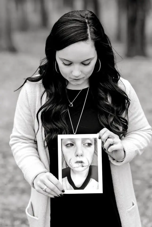 ”I remember every detail of this very moment. The thoughts that ran through my mind when I opened my camera were very dark, which only seemed to worsen. Sitting in a puddle of my own blood with the majority of my lip laying on my leg, my whole mouth on fire, confused and terrified, I didn’t know how I could ever show my face again. At that point, honestly wishing that those very seconds would just be my last — I wanted to give up for good.”