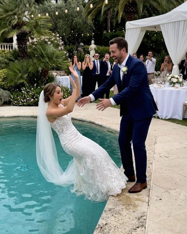 I walked toward him, my heart full of anticipation for what I assumed would be a romantic public tribute. I stood beside him at the very edge of the pool, smiling at our friends and family. “What are you up to?” I whispered playfully. He looked at me, his eyes gleaming with a mischief I misunderstood. “Well, you said you were hoping for a surprise today,” he said loudly enough for the front row to hear. “So here it is!”