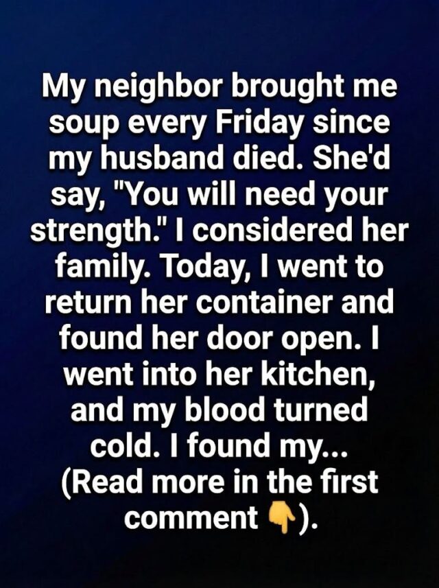 Mrs. Alden lived in the gray cottage across the yard, a woman I had known only through polite waves and brief comments about the weather. She was a fixture of the neighborhood, as steady and unassuming as the ancient oaks lining our street. That first Friday, she stood on my porch holding a ceramic tureen, the steam rising in the chilly autumn air. She didn’t offer platitudes or ask how I was holding up—questions that had become a minefield for me. She simply handed me the container and said, You will need your strength today.
