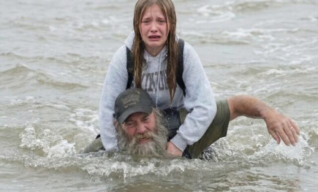 Old Biker held drowning teenager above floodwater for 3 hours with a broken arm and never told her he was dying.