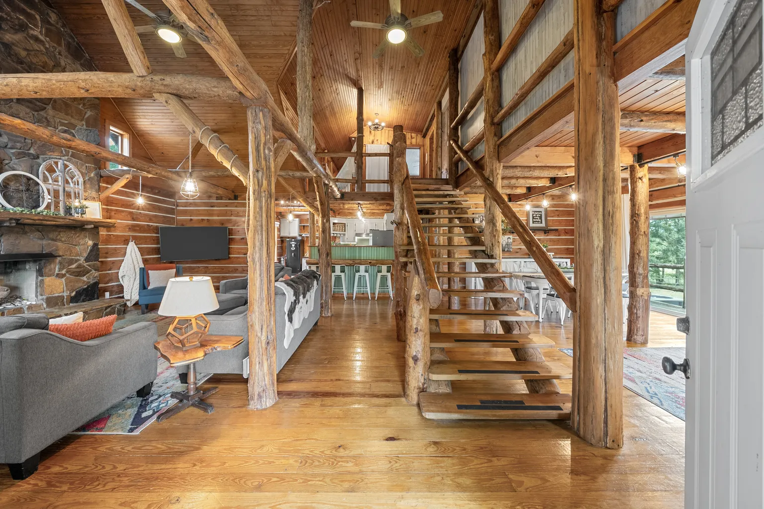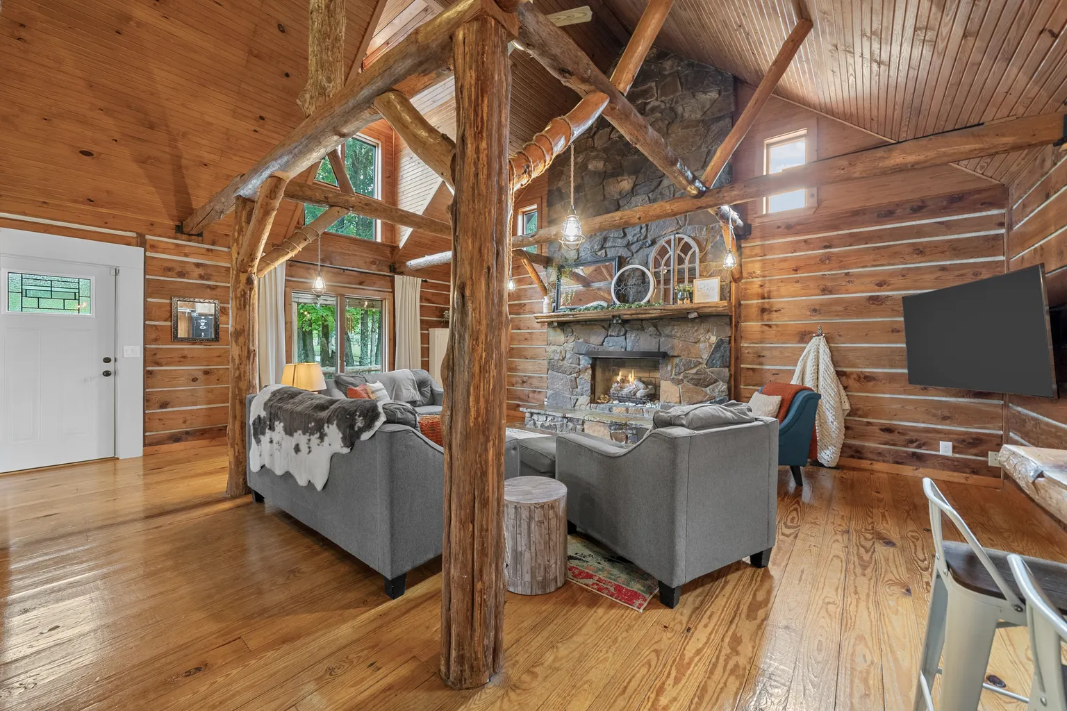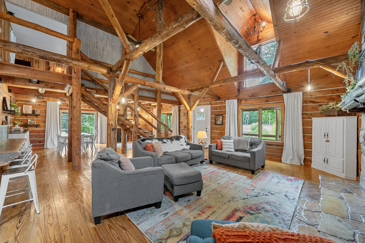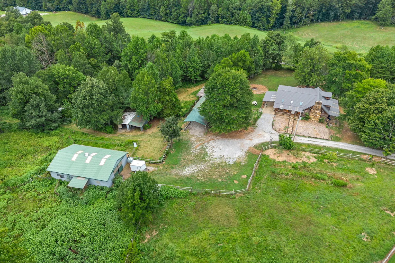 Discover the property on 1205 Shakerag Road in Hanson, Kentucky, set on 20 rolling acres blending rustic character with thoughtful modern updates. Developed in 1996, the main home spans 2,533 square feet, featuring three generously sized bedrooms and three full bathrooms, offering generous living space enhanced by a soaring great room with a stone fireplace, a warm wood interior, and an open floorplan designed for comfort.