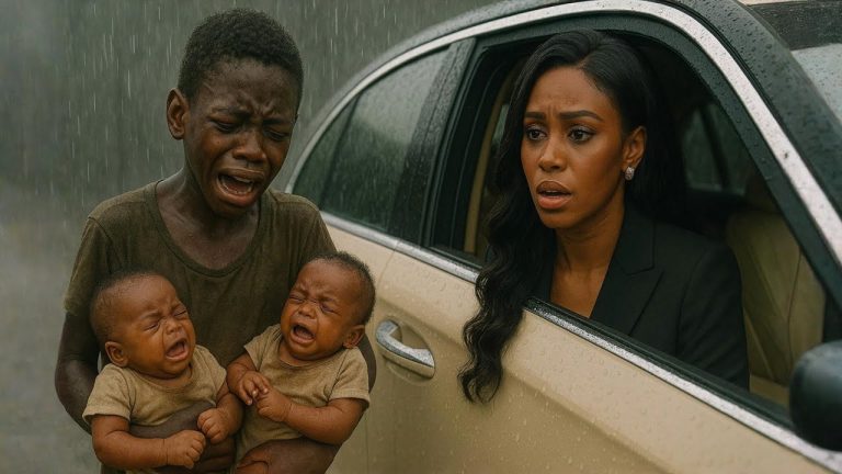 The boy was clearly lying about something, or maybe everything, but the way he cradled the twins, it didn’t feel like a trick. He didn’t ask for money. He didn’t stretch his hand. He didn’t even move. Amora took a deep breath and looked back at her car. The wipers were still moving. Caru was still holding the umbrella behind her. She turned to him. Bring them in. Ma.
