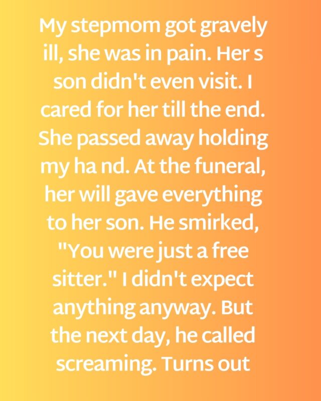 The morning after the funeral, I expected silence, not chaos. But instead of grief settling quietly, my phone rang with a storm on the other end. He was shouting, confused and hurt, after finding a letter hidden inside one of the old boxes his mother left behind. The letter wasn’t addressed to him — it was addressed to me. In her neat handwriting, she thanked me for caring for her with patience during the moments when she felt most fragile. She admitted she couldn’t change her will without causing tension, but she wanted me to know that my kindness meant more to her than anything she could ever give in return.