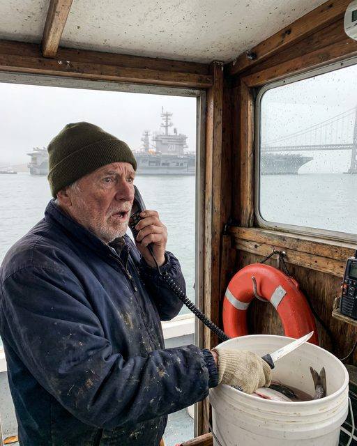 The aircraft carrier was sliding straight toward the bridge with 5,000 people aboard when a quiet lobster fisherman grabbed his radio and said, “Put me through.”