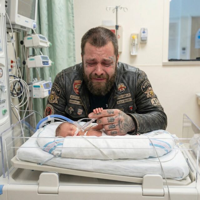 They placed her on his chest. This tiny, fragile human against his leather jacket. He’d taken the jacket off. Just his t-shirt. She weighed almost nothing.