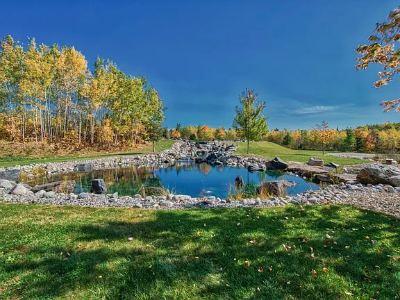 Unwind on the expansive wrap-around deck, ideal for cozy morning coffees or evening gatherings under the stars. Fish in your private trout pond, cool off with a swim in the adjacent pond, or simply soak in the peace and privacy of your surroundings.