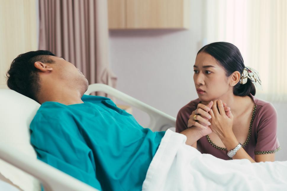 The second story begins in a much quieter place. A hospital room filled with machines, beeping softly, measuring time in breaths and heartbeats. A woman sat beside her husband’s bed day after day while he drifted in and out of a coma. She held his hand through every long night and every uncertain morning, never knowing if today would be the day he truly came back.
