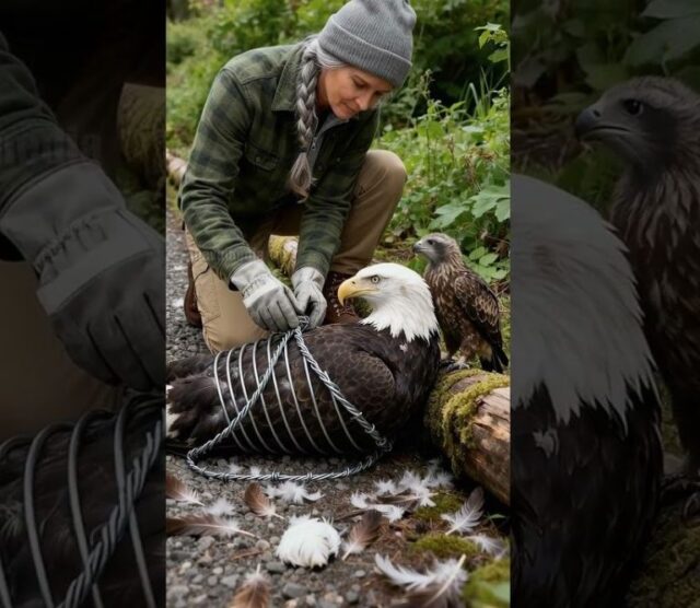 A bald eagle, the great symbol of freedom, was trapped on the forest floor. Its leg was caught in a cruel metal poacher’s snare, the sharp wire cutting deep into its flesh. Its magnificent wings beat helplessly against the ground, trying to rise, but every movement only caused more pain.